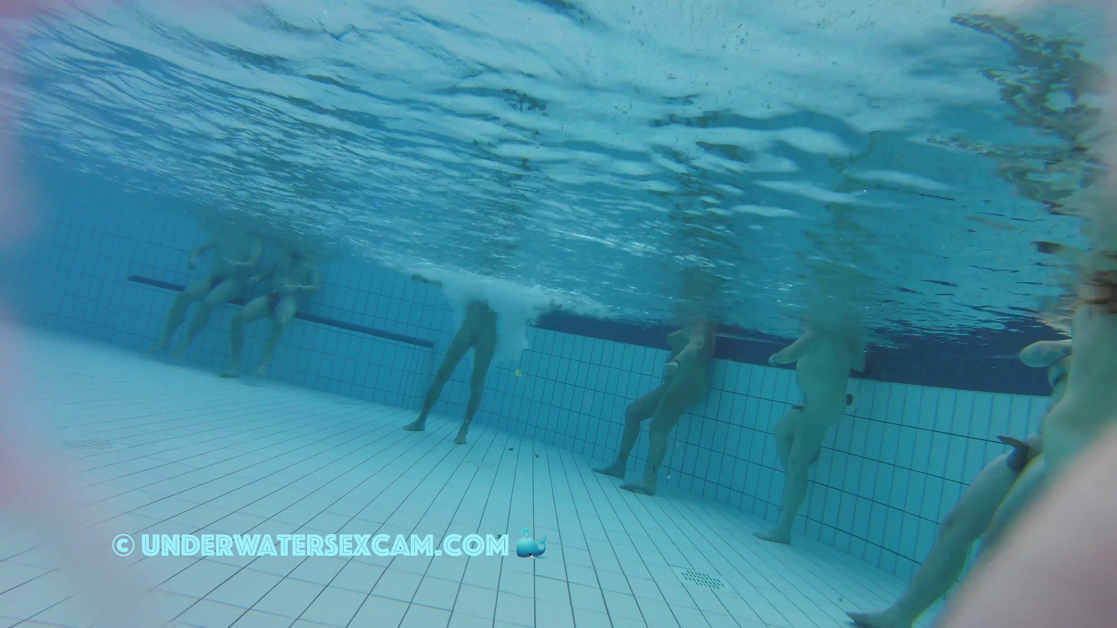 She is a sexy girl and makes him want more in a public pool and the voyeur is filming them with his hidden underwater camera.