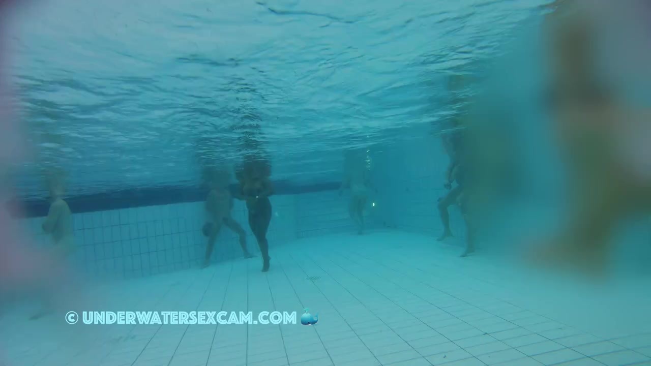 Her big African tits are amazing while the horny voyeur is filming her with his hidden underwater camera in a public pool.