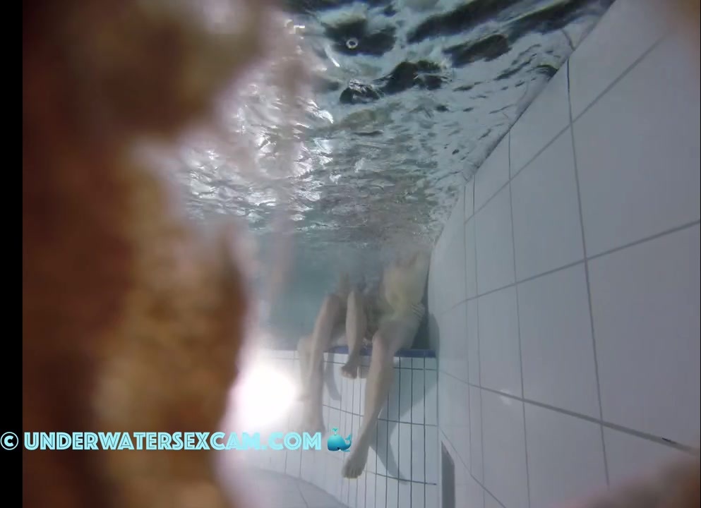 She notices his huge erection and her hand gets closer and closer while the voyeur is filming with his hidden underwater camera in a public pool at night.