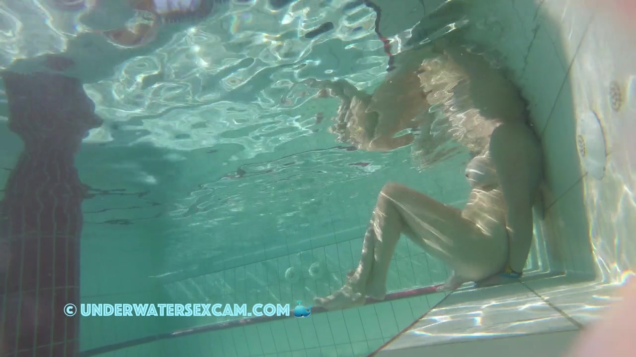These two pretty milfs are enjoying the first spring sunshine while the voyeur is taping them with his hidden underwater camera in a public spa.