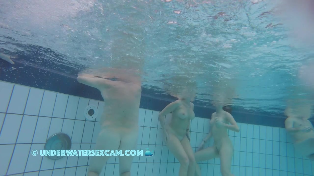 These two pretty girls make me all jittery while the hidden cam is running underwater in a public sauna pool