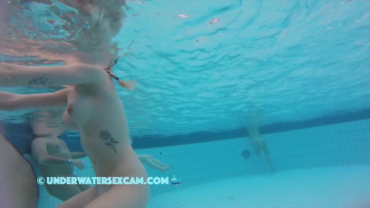 Cool combination: pierced tits and cute pigtails filmed by a horny voyeur with a spy cam underwater in a public spa.