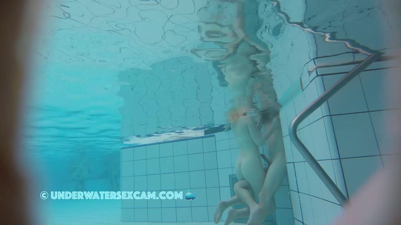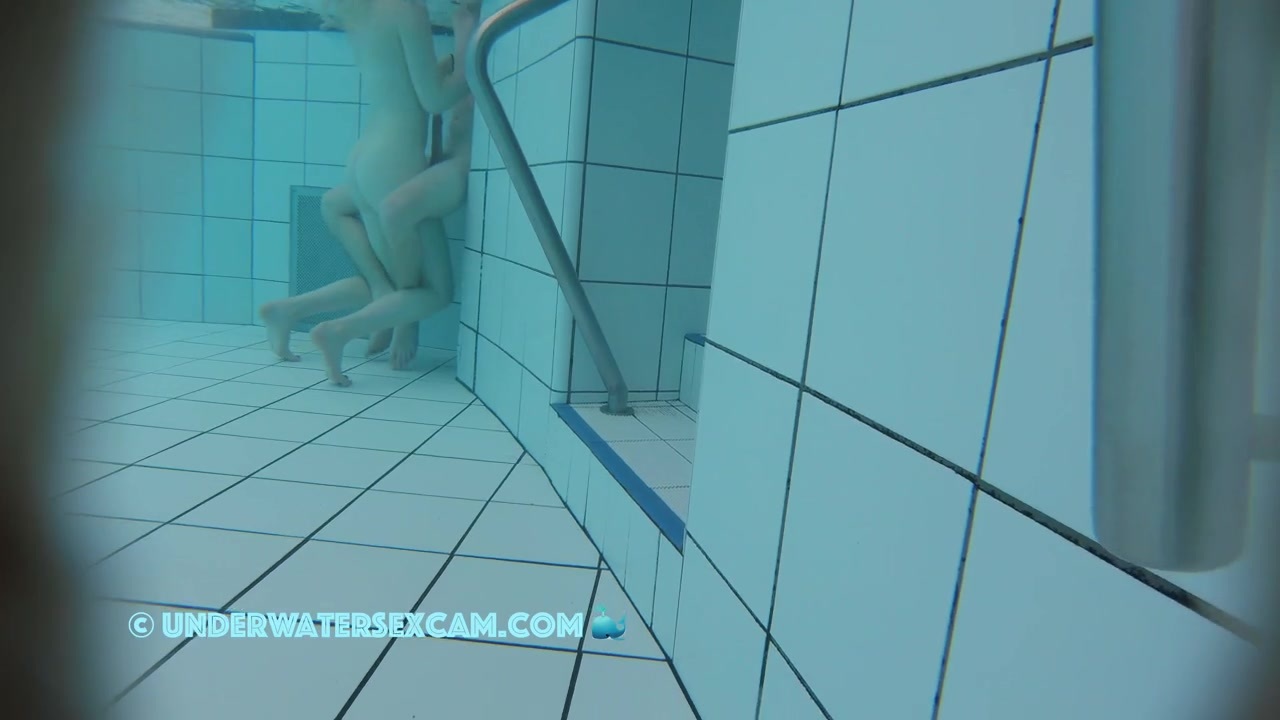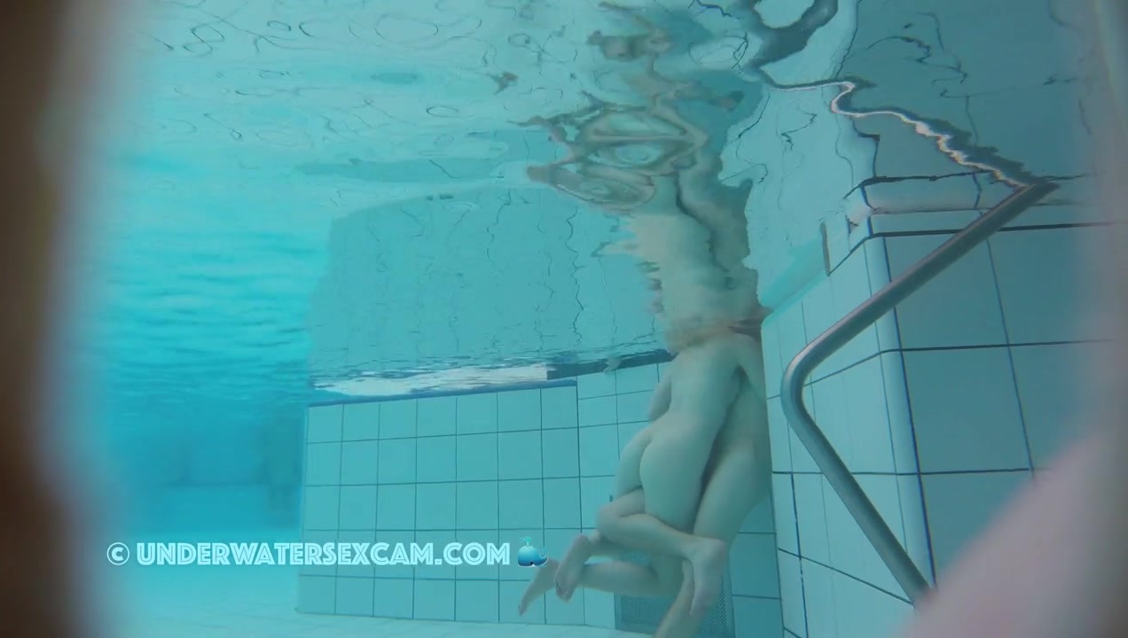 This teen girl gets fucked hard by huge dick until he comes inside her while the hidden security cam is shooting them underwater in a public pool.