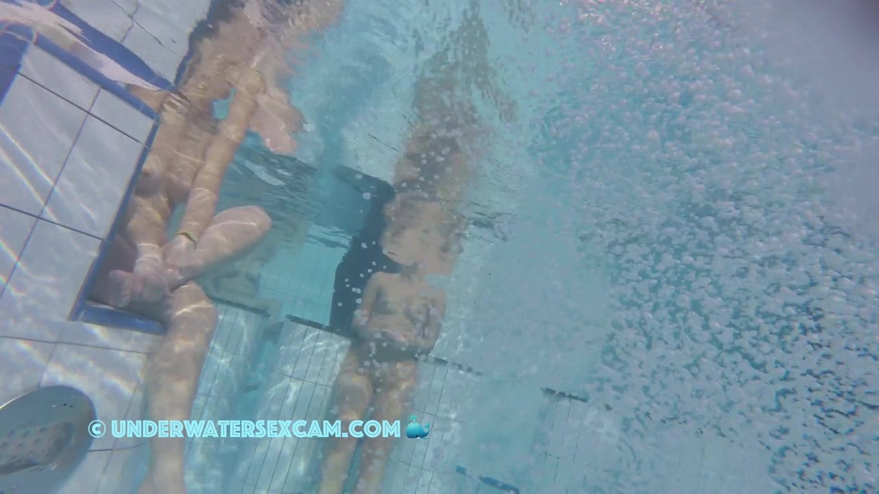 These two girls are naked for the first time in the nudist resort and still a bit shy and the voyeur is filming them underwater with his hidden spy cam.