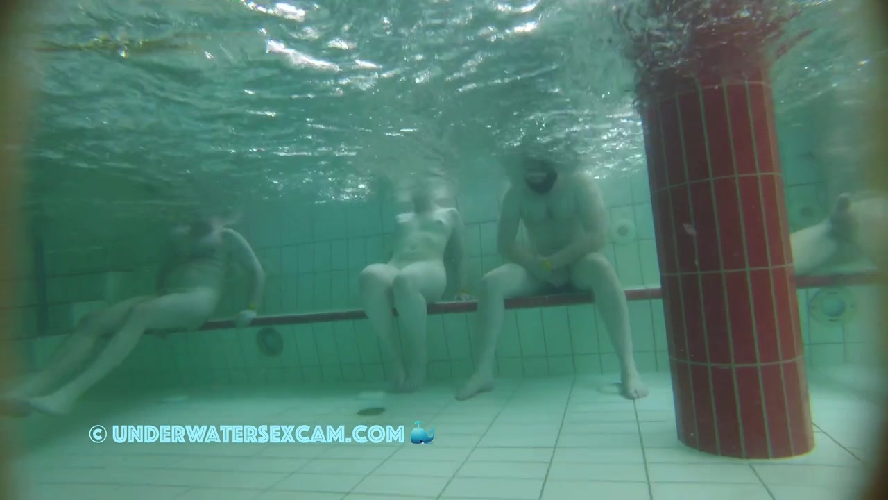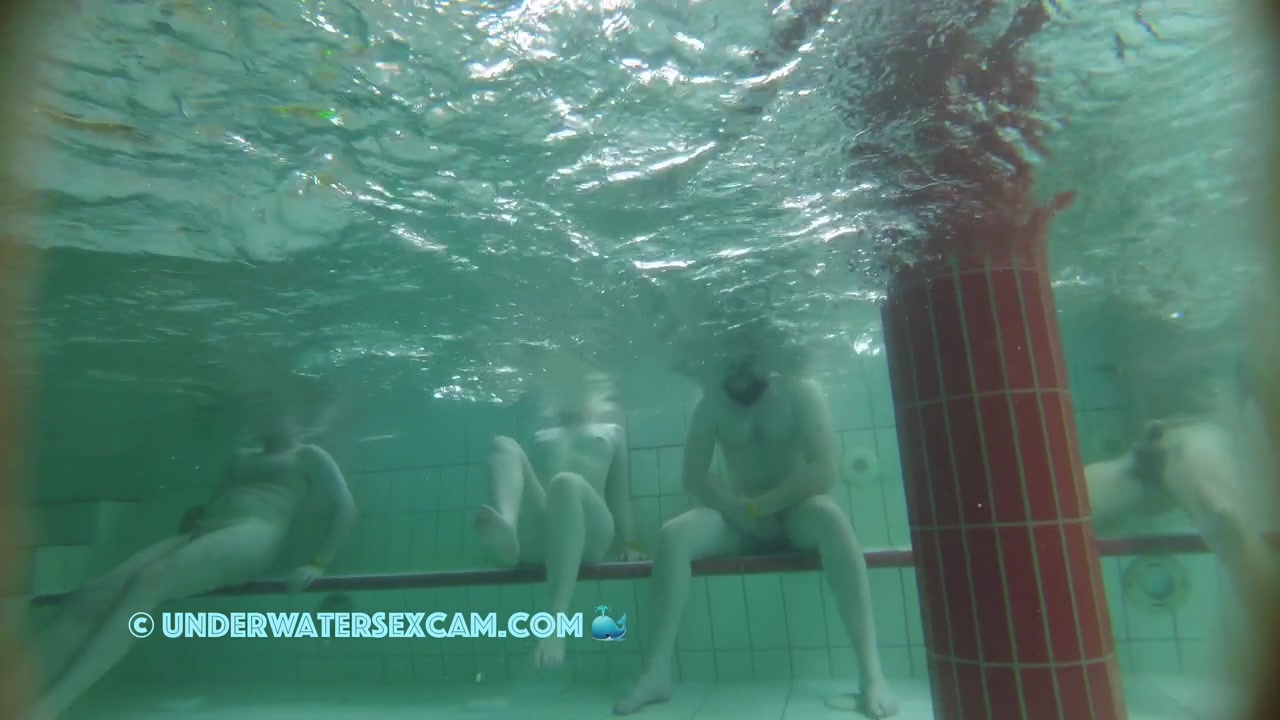 His girlfriend is shy but he sees the other naked girls and gets horny while the voyeur is filming them with his hidden underwater cam in a public spa.