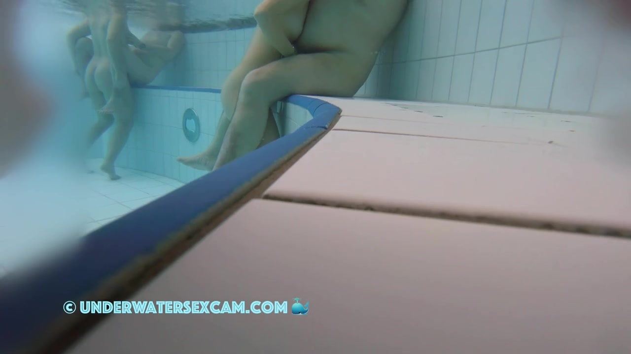 He's probably 70, fat and ugly, but she's 25, slim and cute while the hidden security cam is taping them underwater in a public nudist resort.