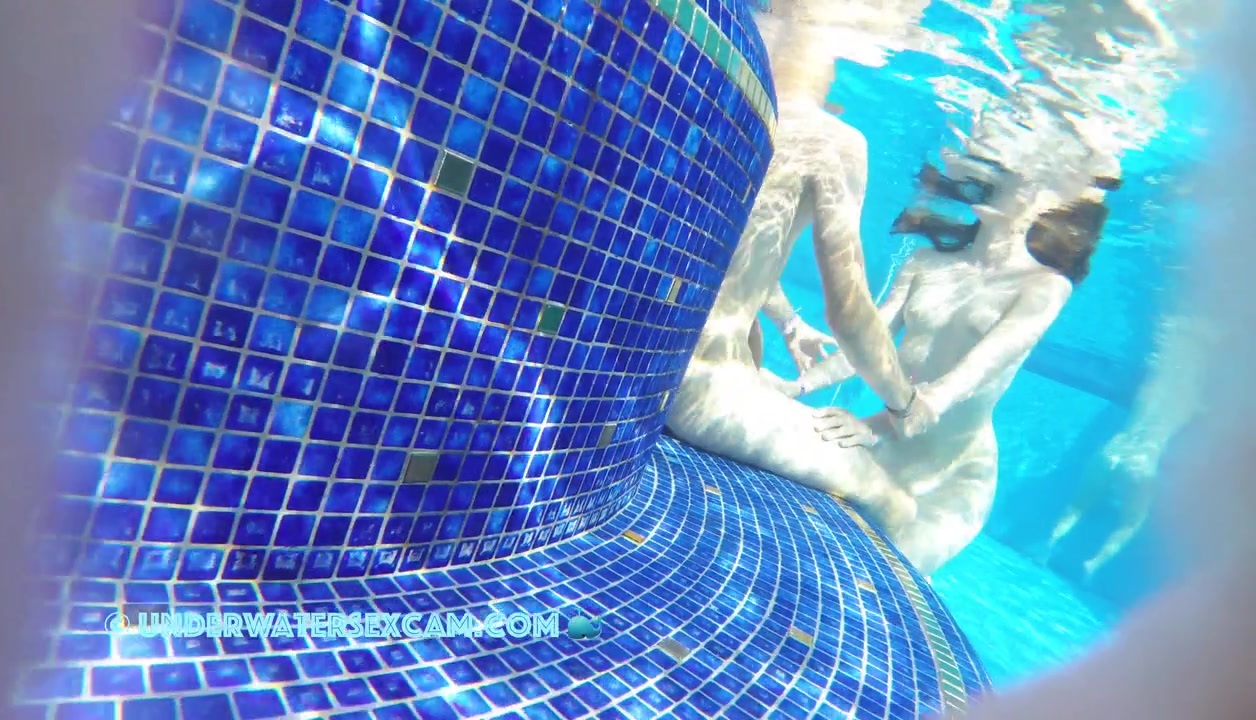 Teen 18+ couple nude first time and he gets harder underwater in a public pool while Peeping Tom is shooting them with his hidden cam.