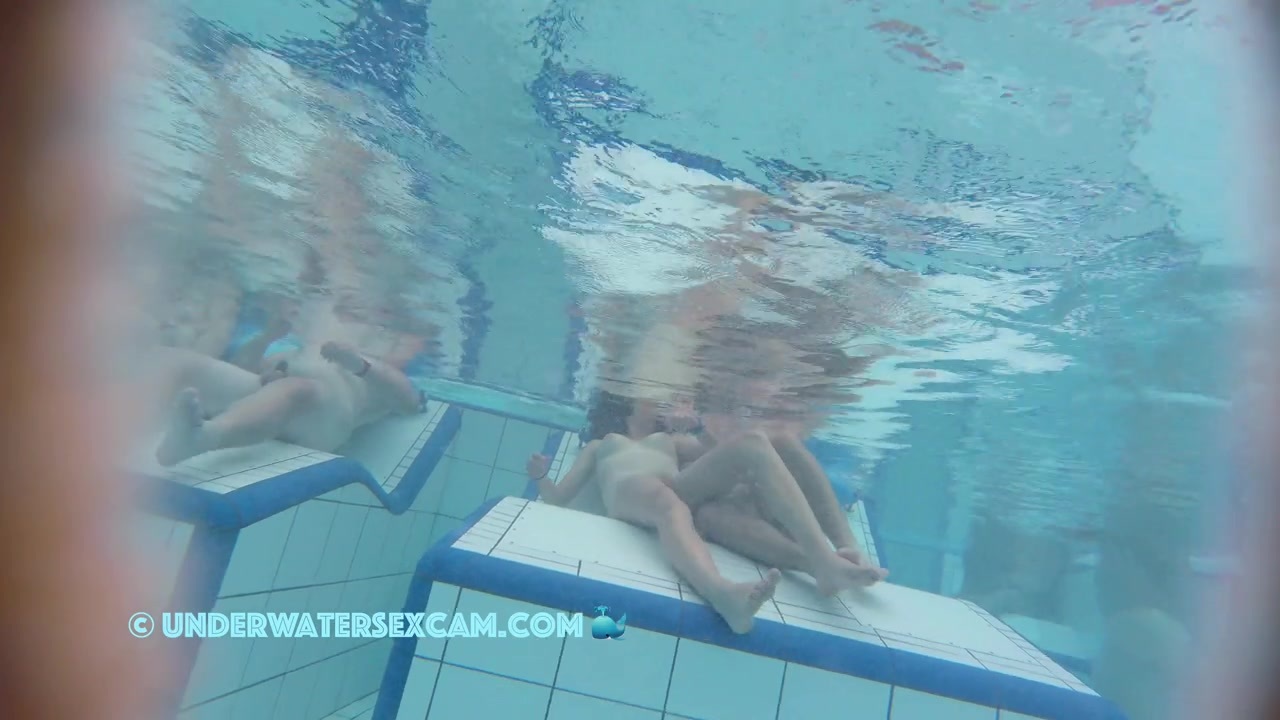 She is rolling naked in the water and shows her pussy while the hidden surveillance camera is taping her underwater in a public spa.