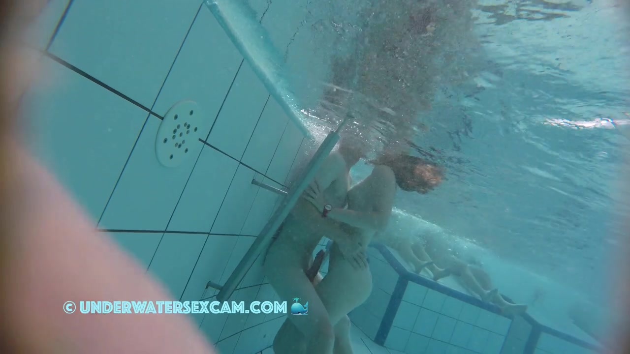 He wants to stick his big hard long cock into her so badly while the hidden surveillance camera is taping them underwater in a public nudist resort.