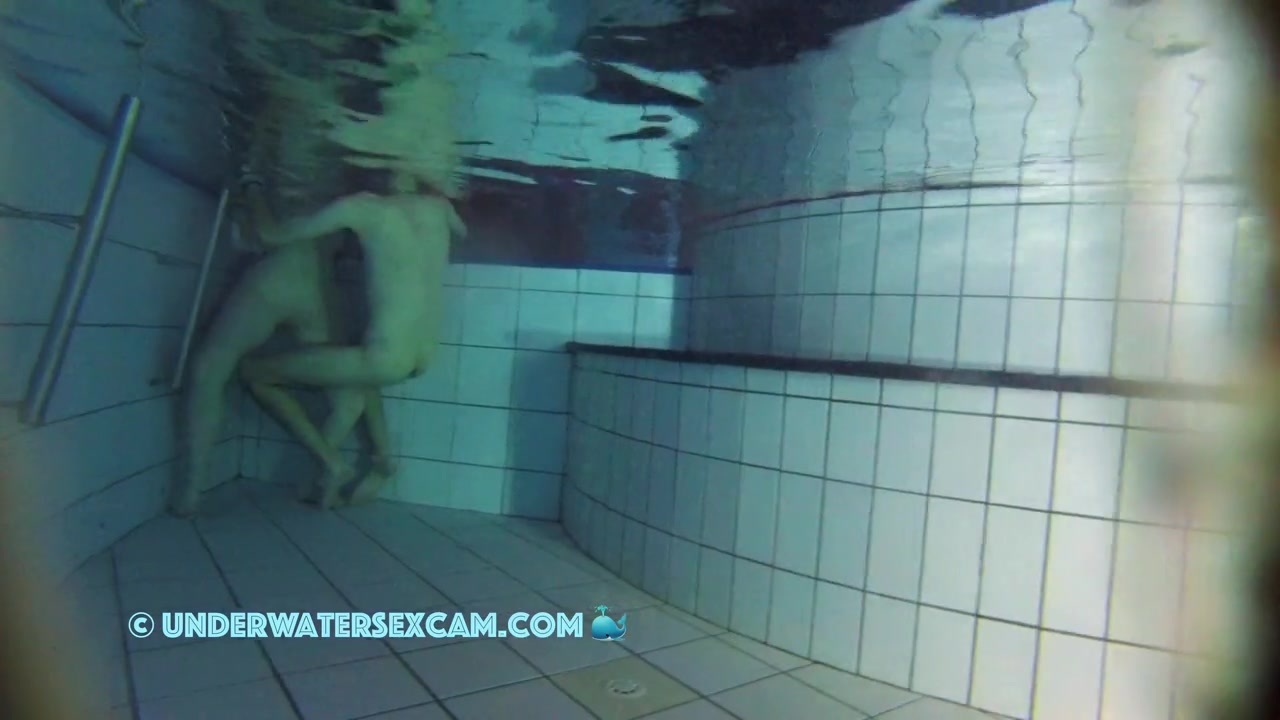 Teen couple watching each other masturbating while the voyeur is tryomg to film them underwater in a public pool at night with a hidden cam.