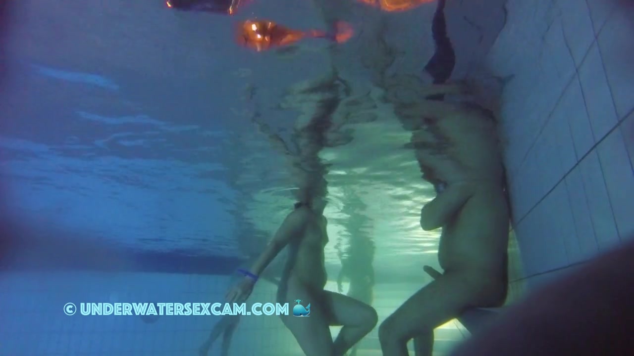 Some things get particularly hard in the pool at night while the hidden surveillance camera is recording underwater in a public sauna pool.