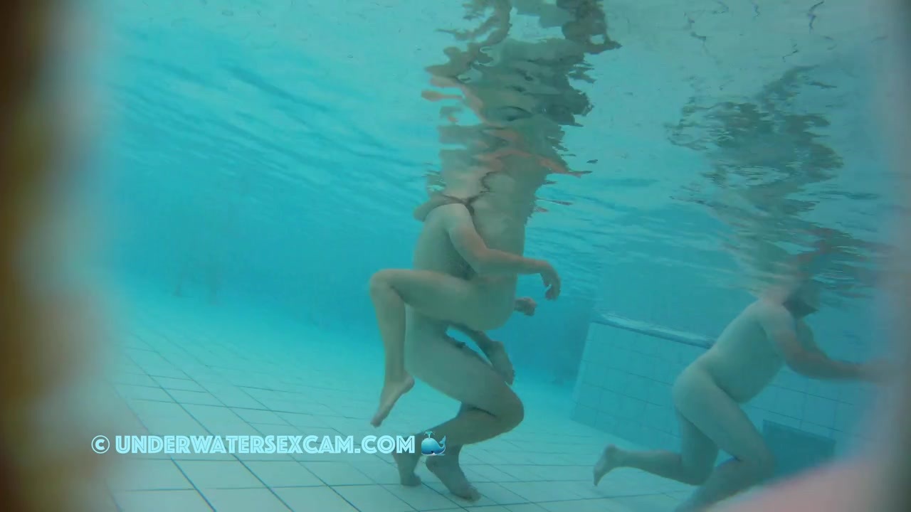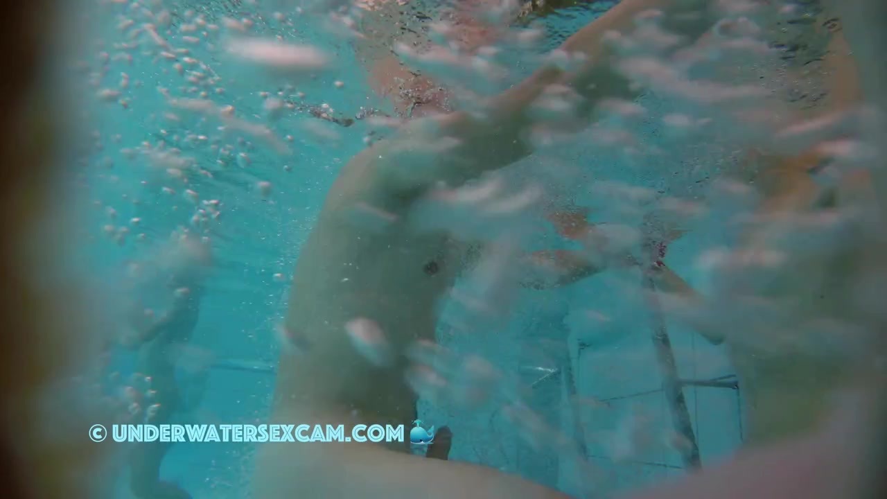 He tries to hide his erection in public but it is difficult when you are naked meanwhile the horny voyeur is filming them with his hidden underwater cam in a sauna pool.