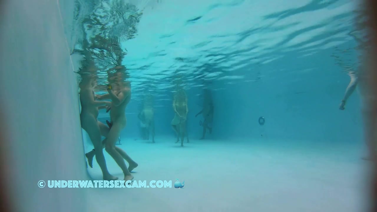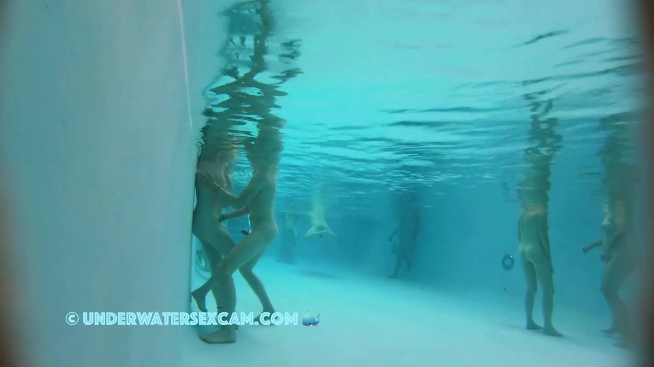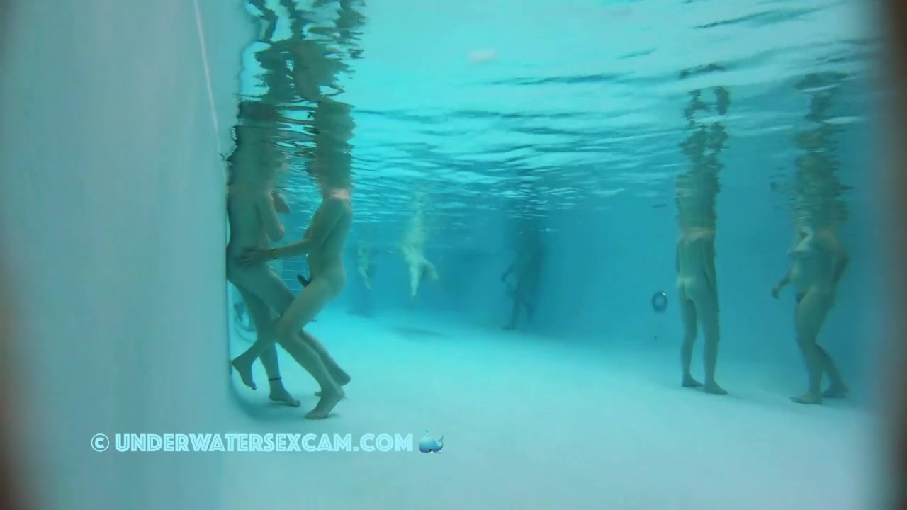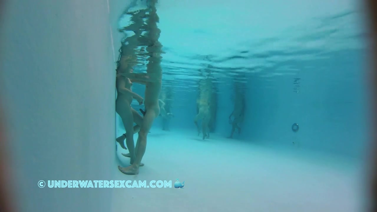 He wants to show her his cock so much but she is shy while the hidden security cam is taping them underwater in a public pool.