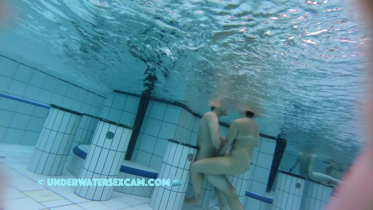 She gives him a hand job but he's afraid of getting caught while she doesn't care and the voyeur is filming them with his hidden underwater camera in a public FKK resort.