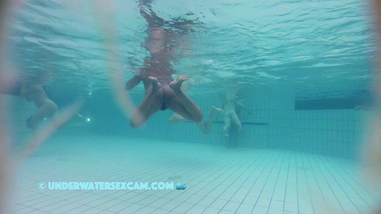 This black lady would like to use the underwater jet for more than just a massage while the voyeur is filming her underwater in a public nudist resort with a spy camera.