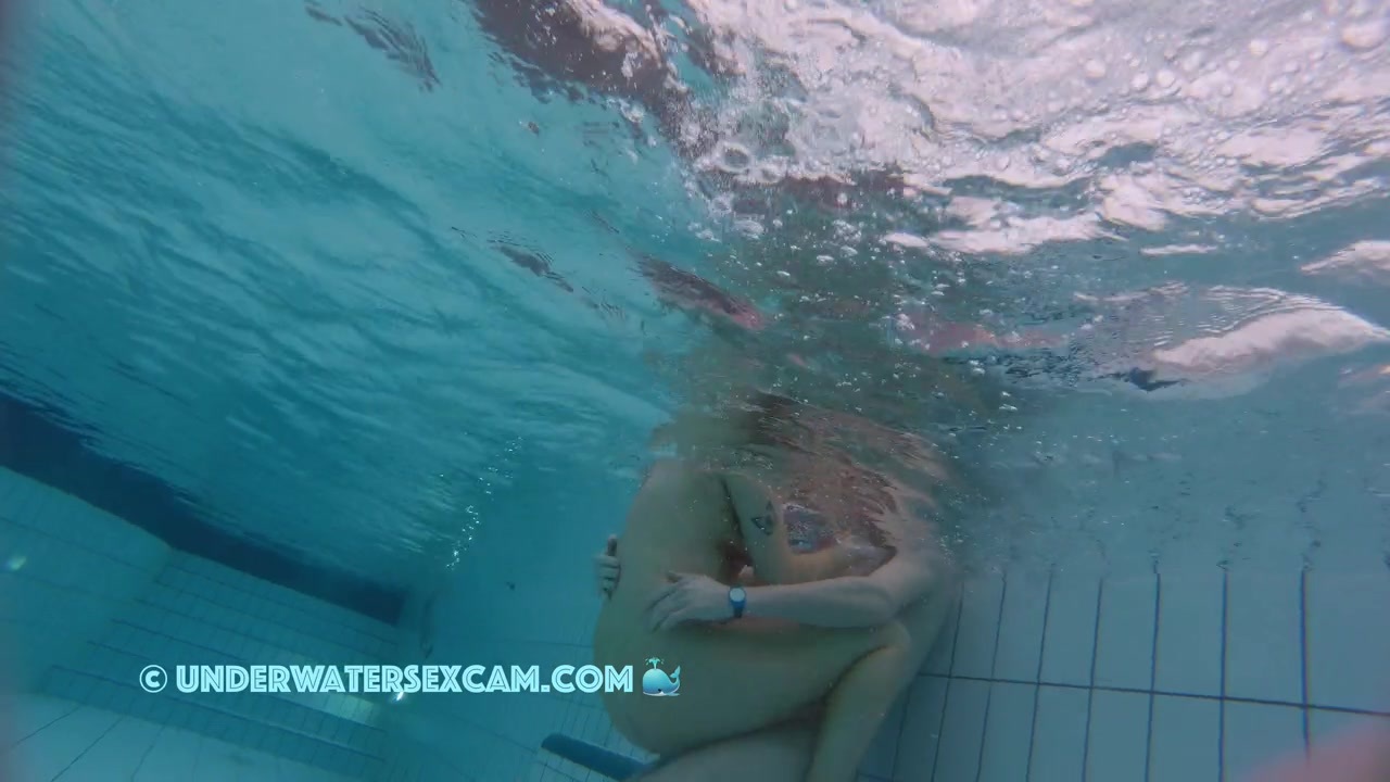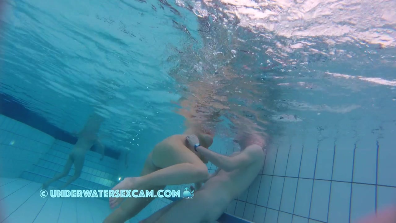 She really can't hide the fact that she is totally horny and really wants to fuck while the horny voyeur is shooting them underwater in a public spa with a hidden cam.