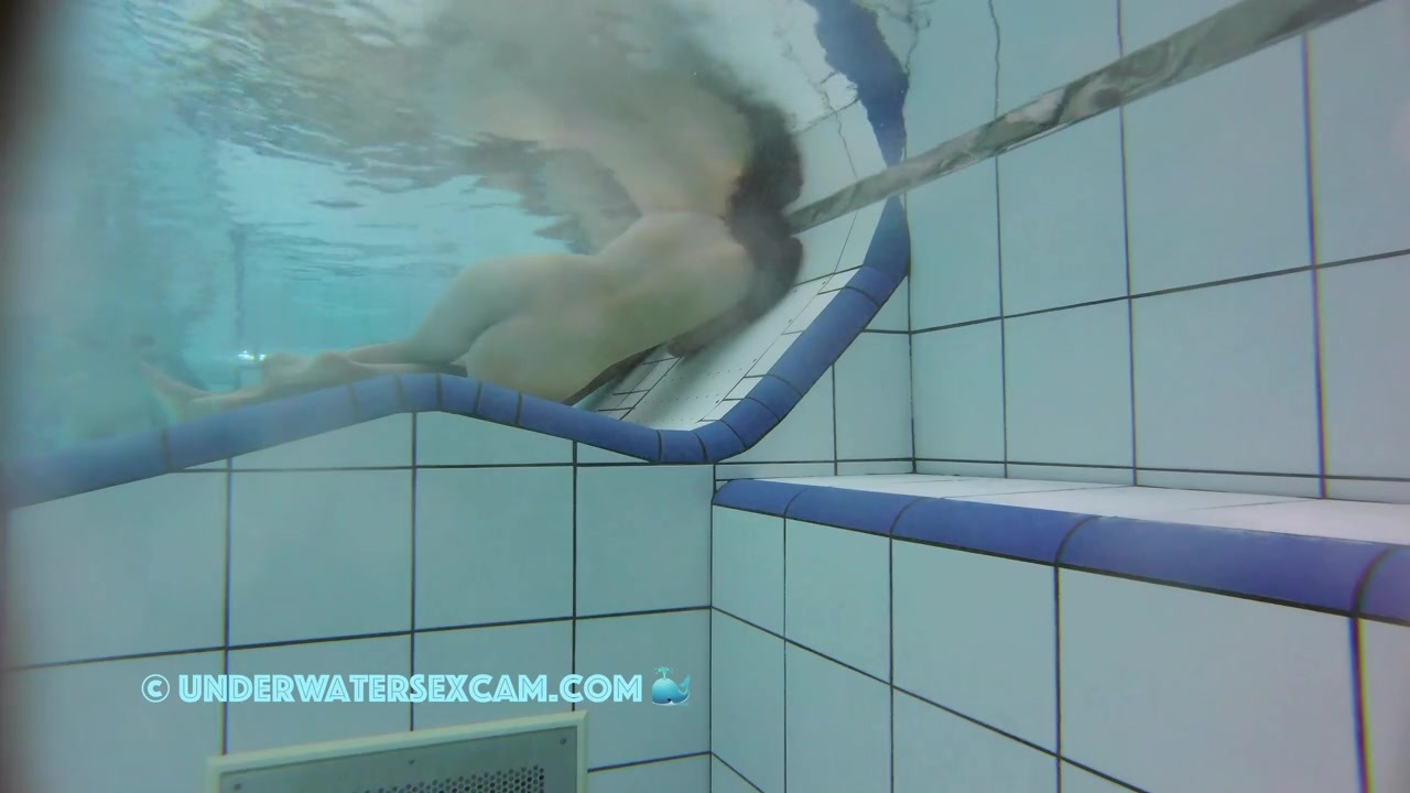 She causes a really huge erection for him just because she's naked next to him and the horny voyeur is shooting them underwater in a public pool with a hidden pool camera.