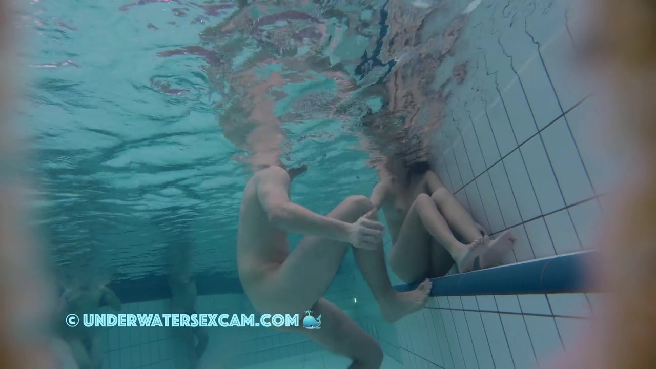 This young teen couple is the first time together naked in the sauna pool while the voyeur is filming them with his hidden underwater camera.
