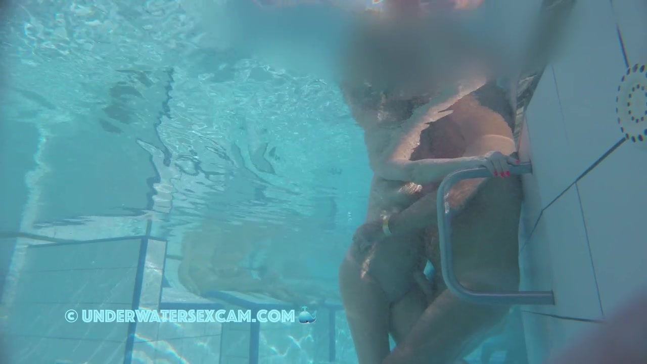 Retired couple plays underwater while he fingers her again and again and the hidden surveillance camera is taping them underwater in a public fkk resort.