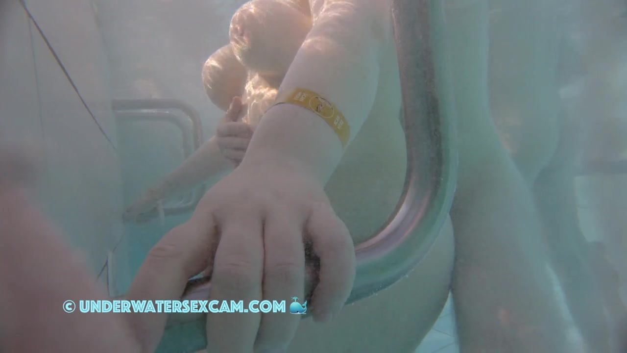 Husband forces his wife to masturbate with the jet and fucks her from behind while the curious voyeur is shooting them underwater in a public nudist spa.