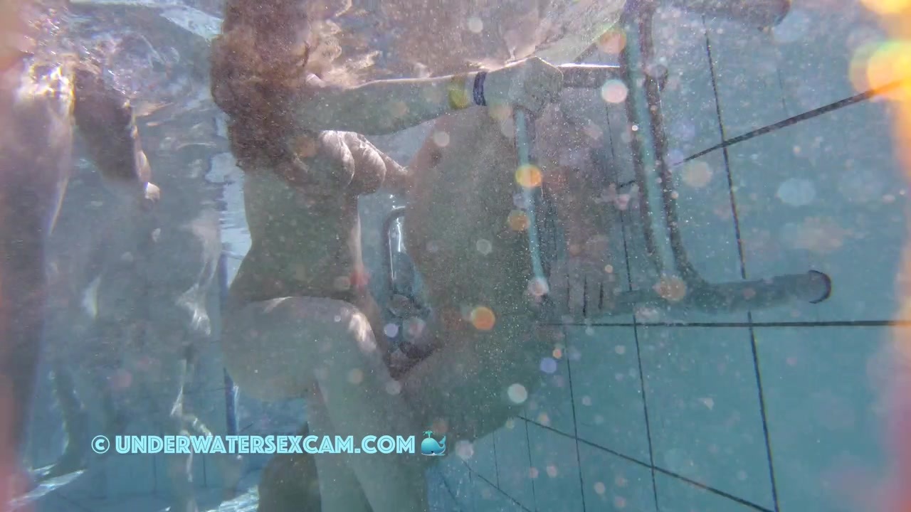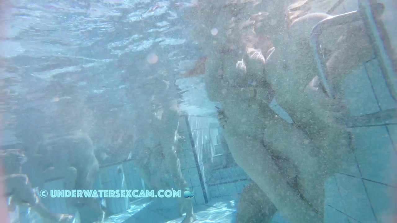 The young couple may have other ideas of what to do naked in the pool while the horny voyeur is filming them underwater in a public nudist resort with an underwater spy cam.