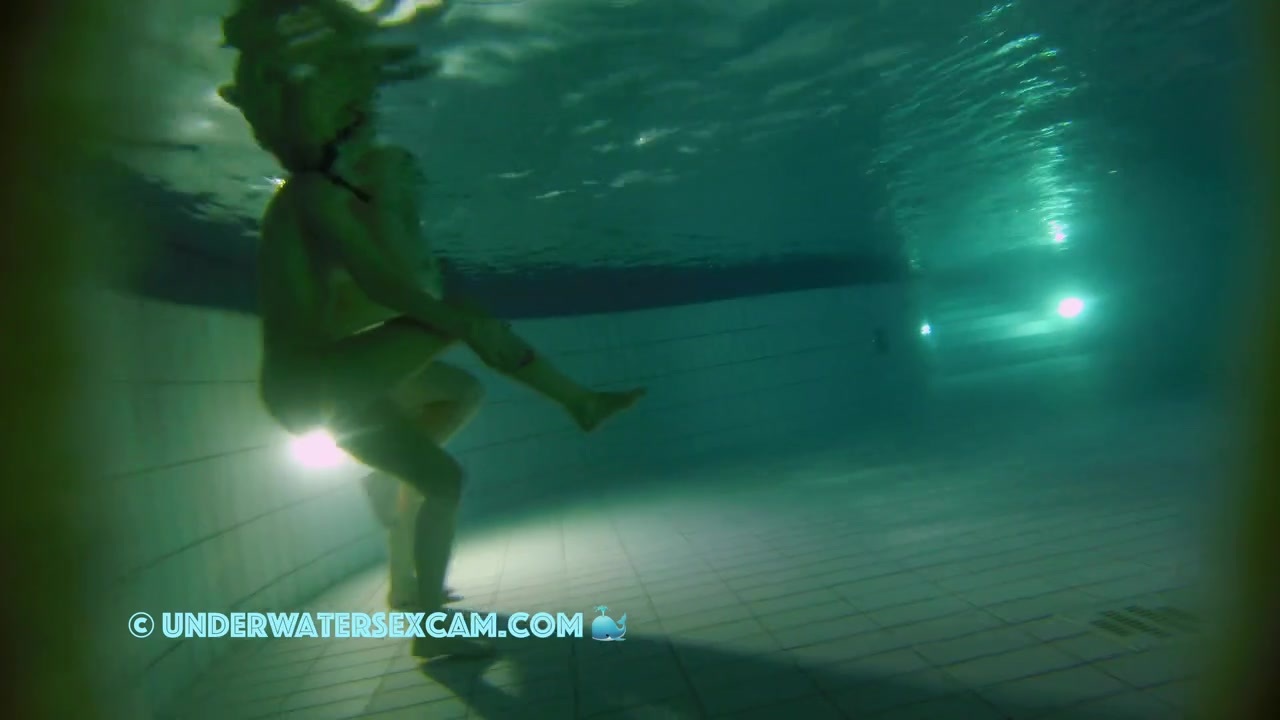 Pigtails are so hot with sexy girls and I think I should ask her if she wants to come with me while the hidden surveillance camera is taping her underwater in a public spa at night.