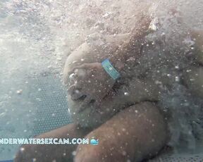 Can't quite understand why he doesn't just stick his finger in because that's what she wants meanwhile the hidden security camera is taping them underwater in a public sauna pool.
