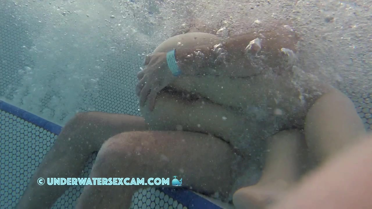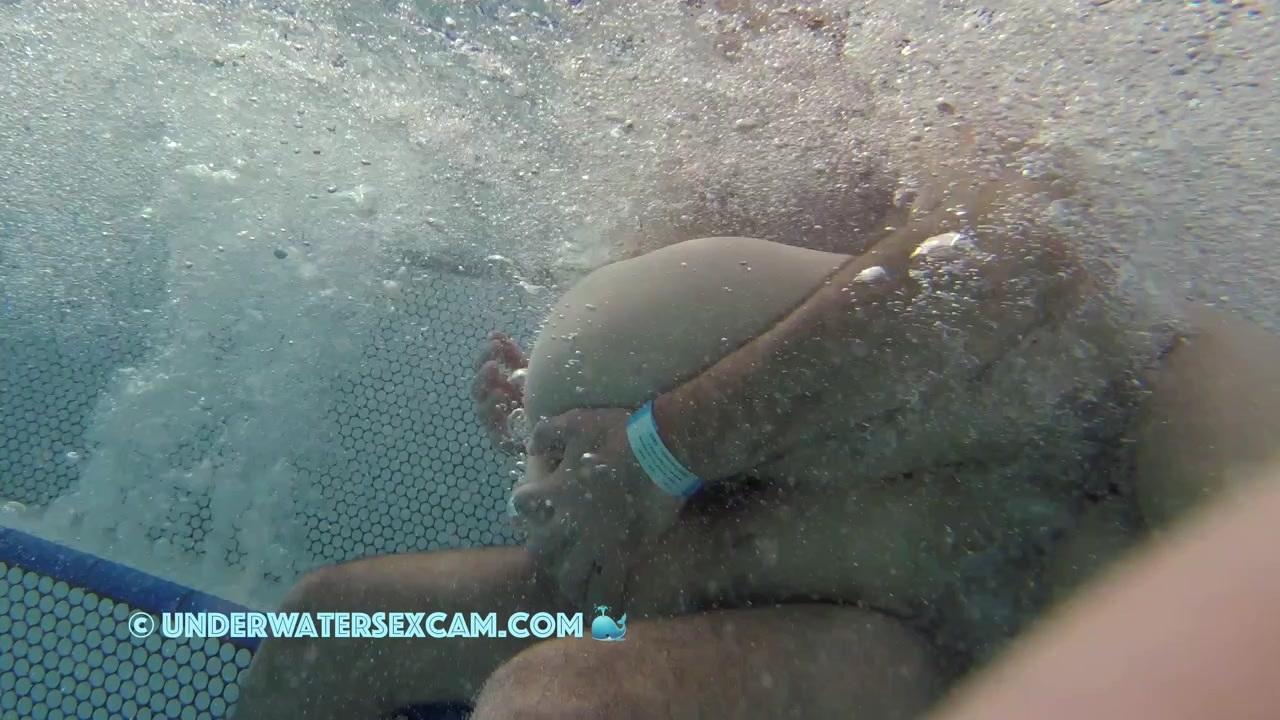 Now stick your finger in her because that's exactly what she wants you fool while the hidden surveillance camera is taping them underwater in a public nudist spa.