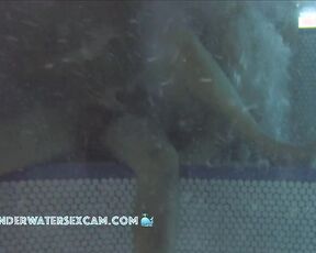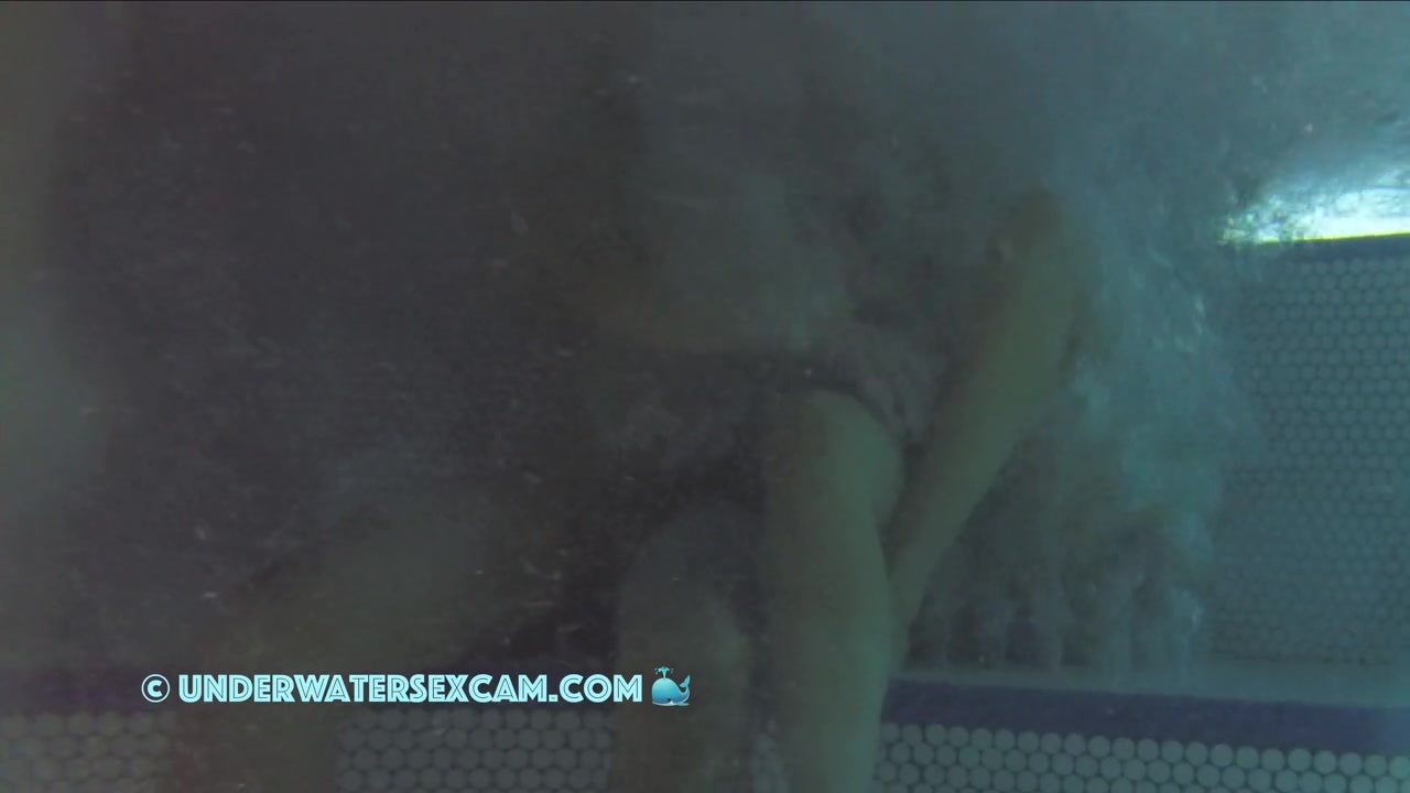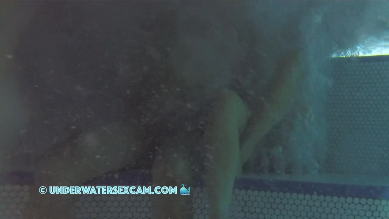 She is kind enough to jerk him off by hand so that he gets hard and can fuck her while the hidden surveillance camera is taping her underwater in a public nudist resort at night.