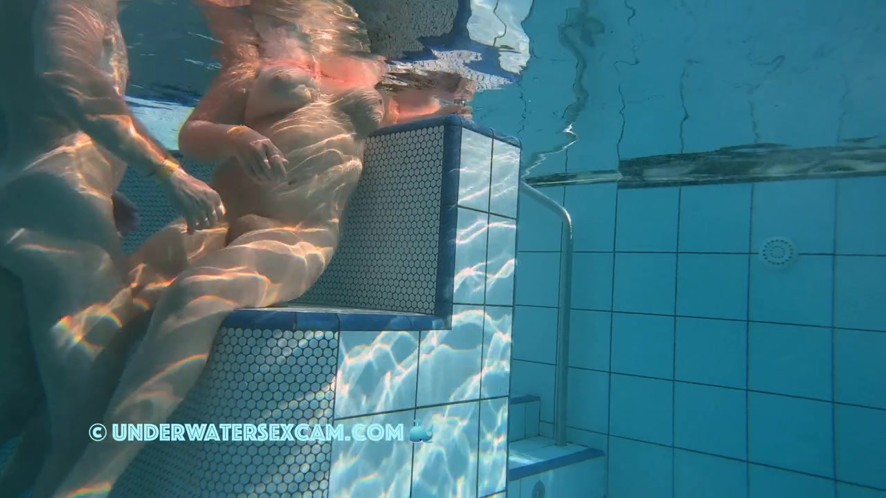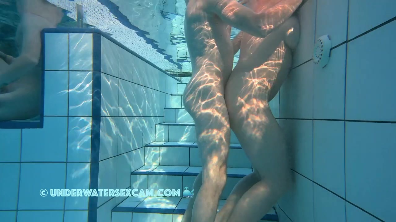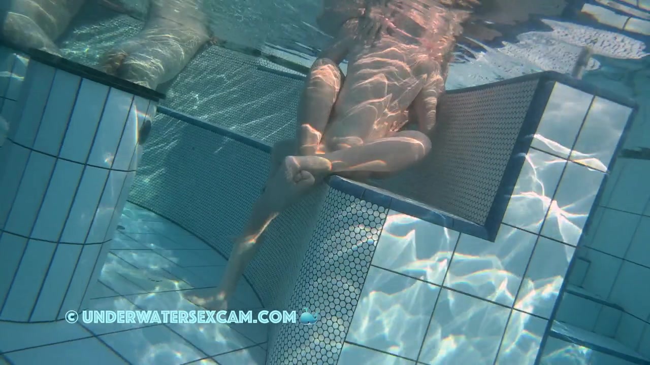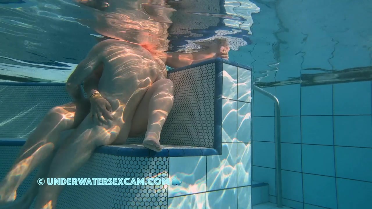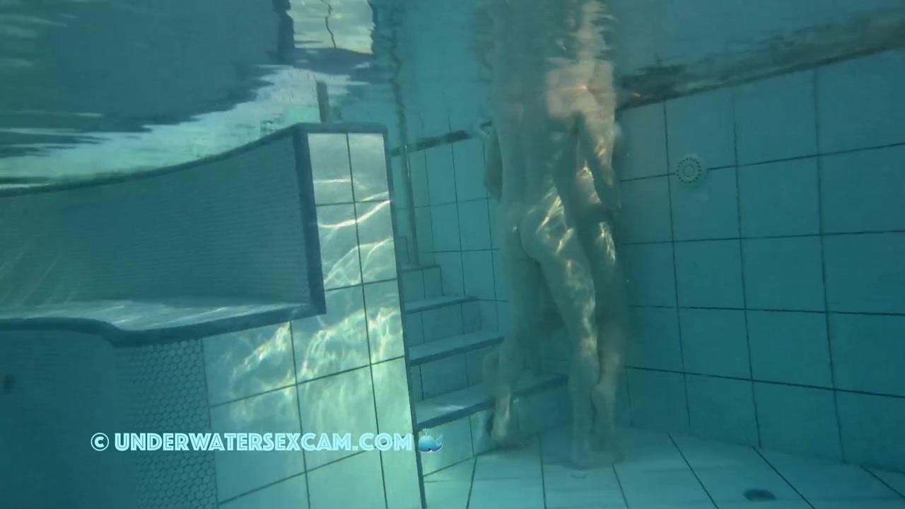 An experienced husband fucks his wife nice and slow while watching the young chicks around him while the hidden security cam is taping them underwater in a public pool.