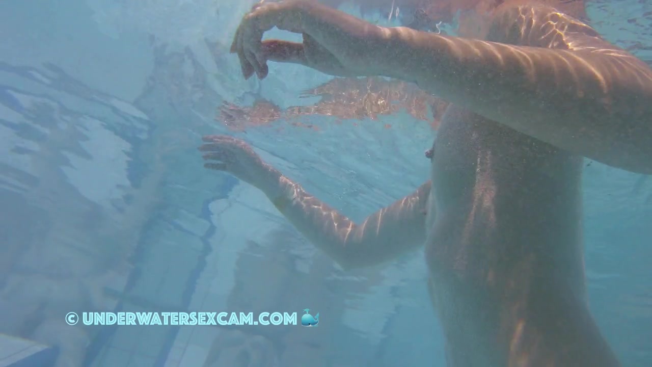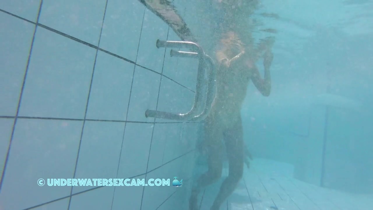 This hot chick walks past briefly to take a look at my cock but it's probably too big for her while the hidden surveillance camera is taping her underwater in a public nudist resort.