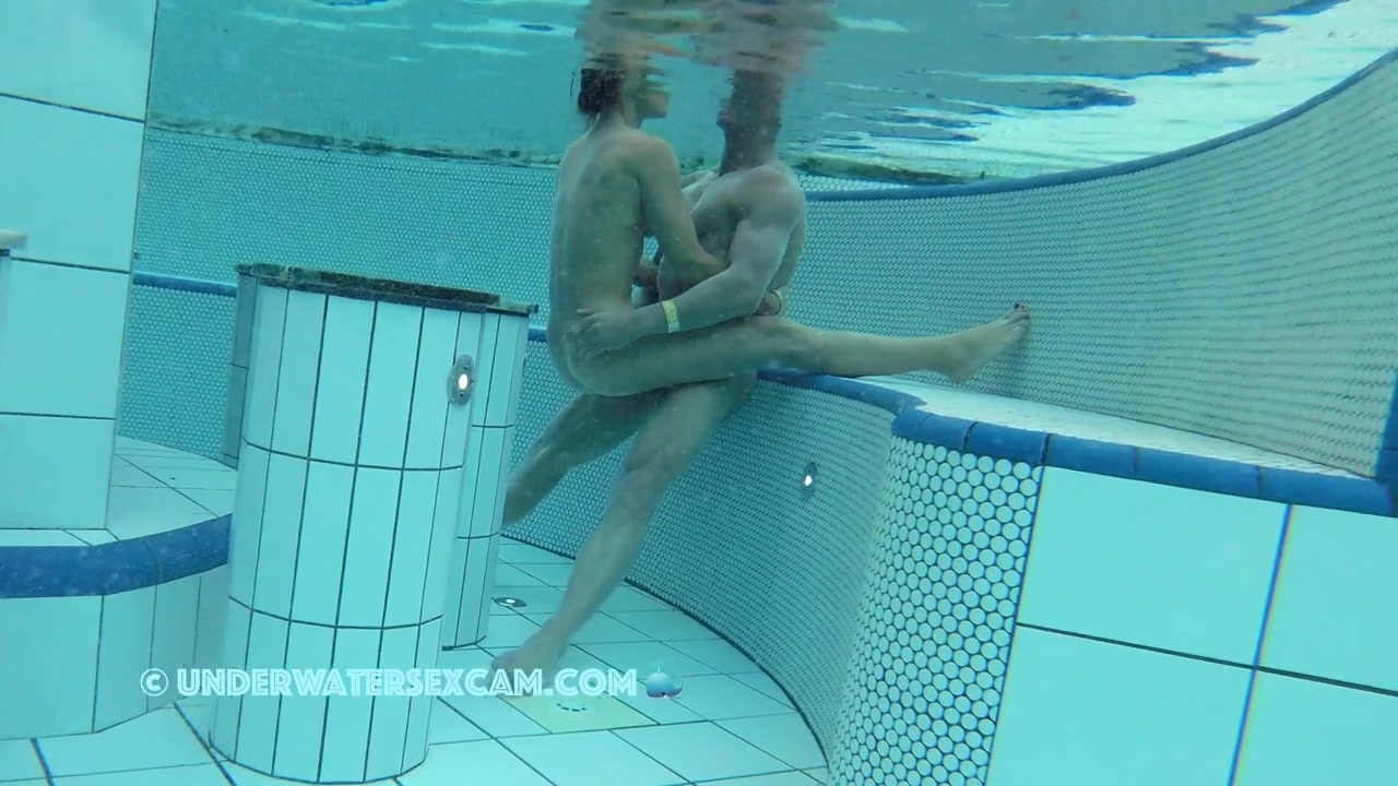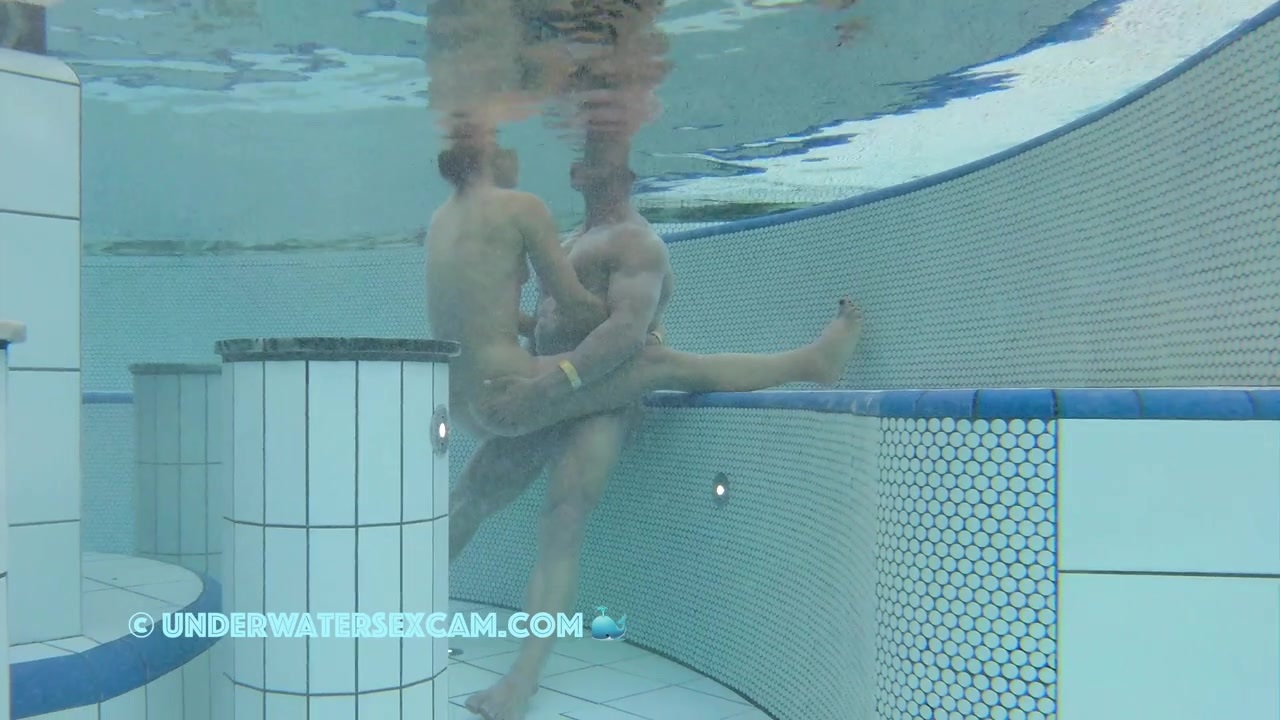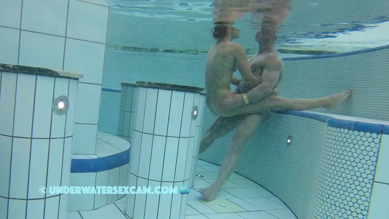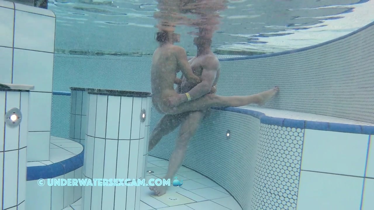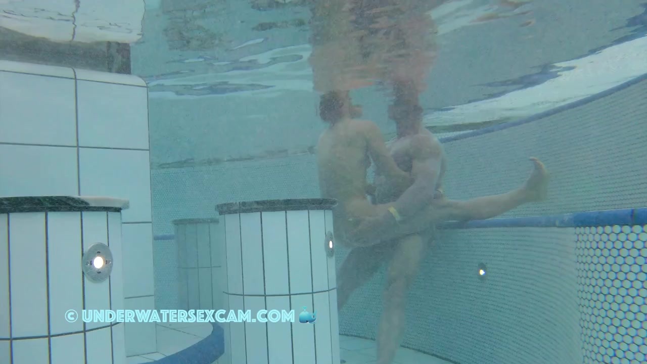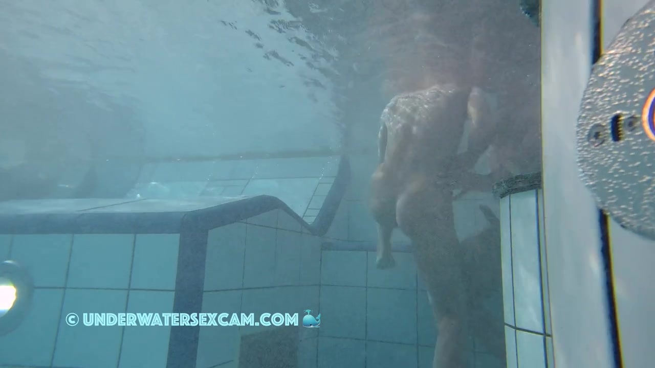 Elastigirl meets superman to have some fun in the sauna pool while the hidden security camera is recording all underwater in a public nudist spa.