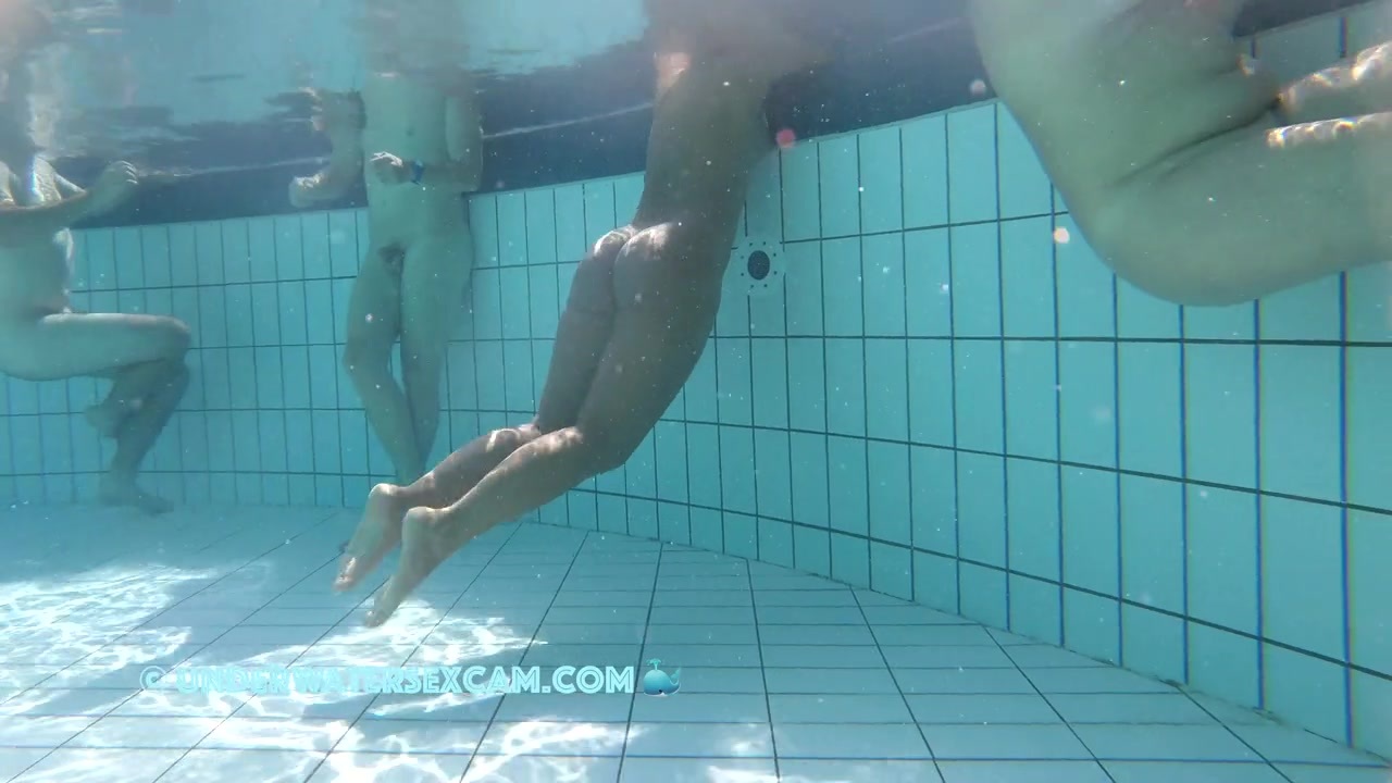 She gets really horny and masturbates in public in front of everyone while the horny voyeur is filming her underwater in a public sauna pool with a hidden cam.
