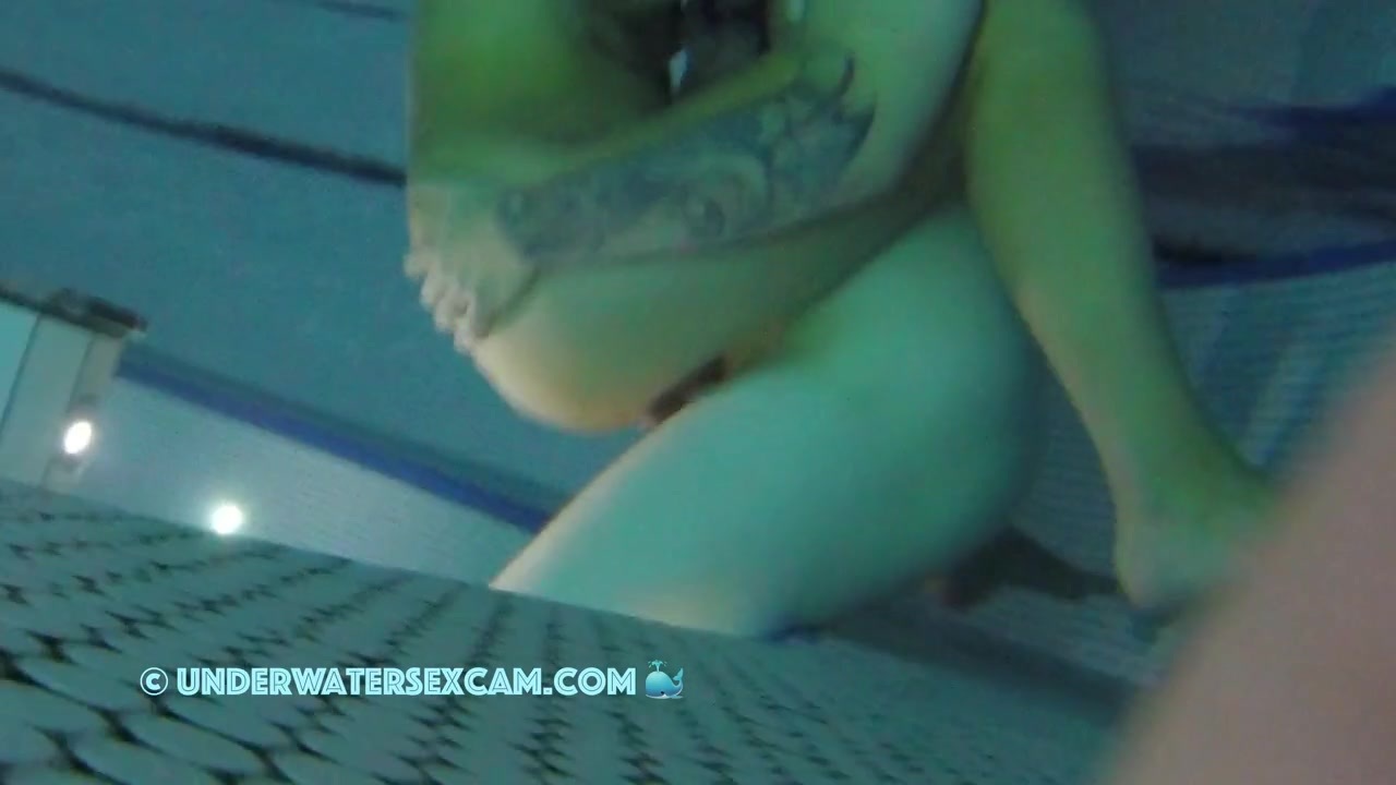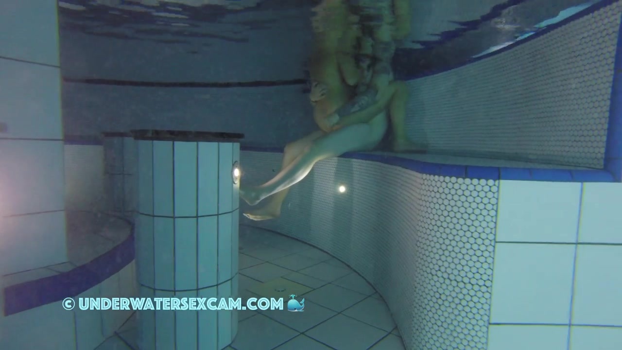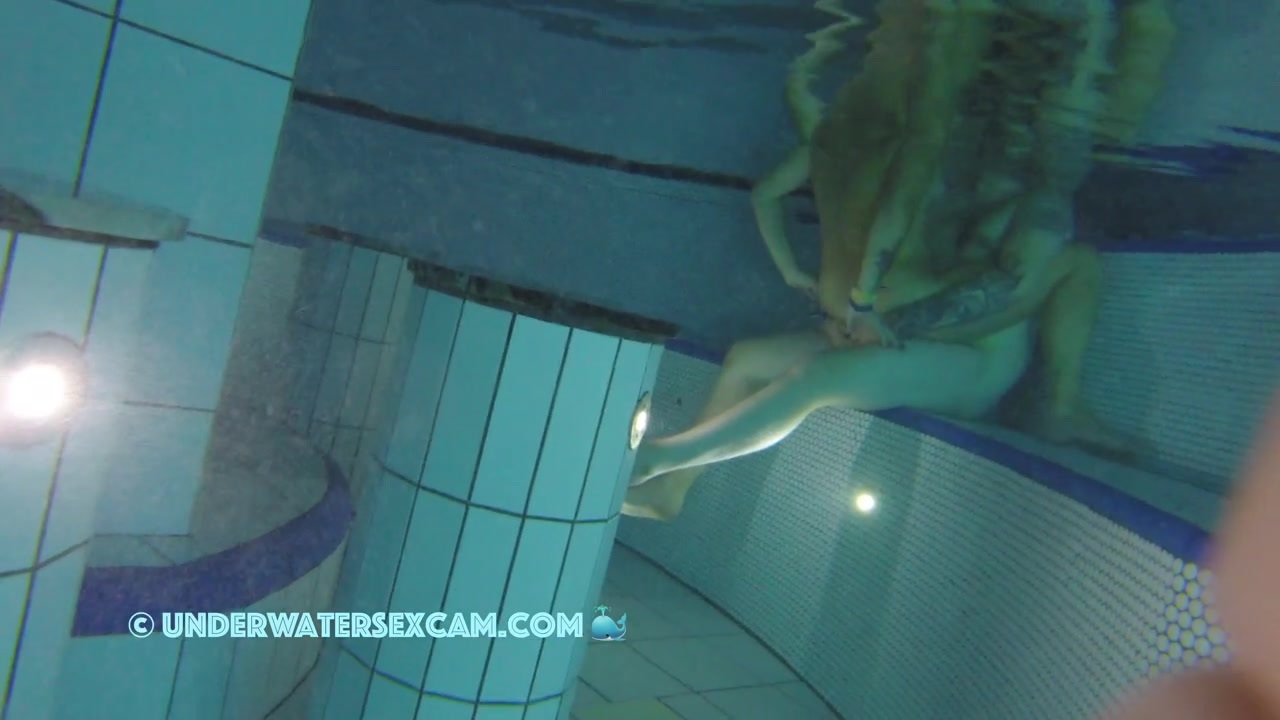 When the sauna pool is almost empty, you can have another good fuck while the hidden surveillance cam is taping them underwater in a public nudist resort at night.