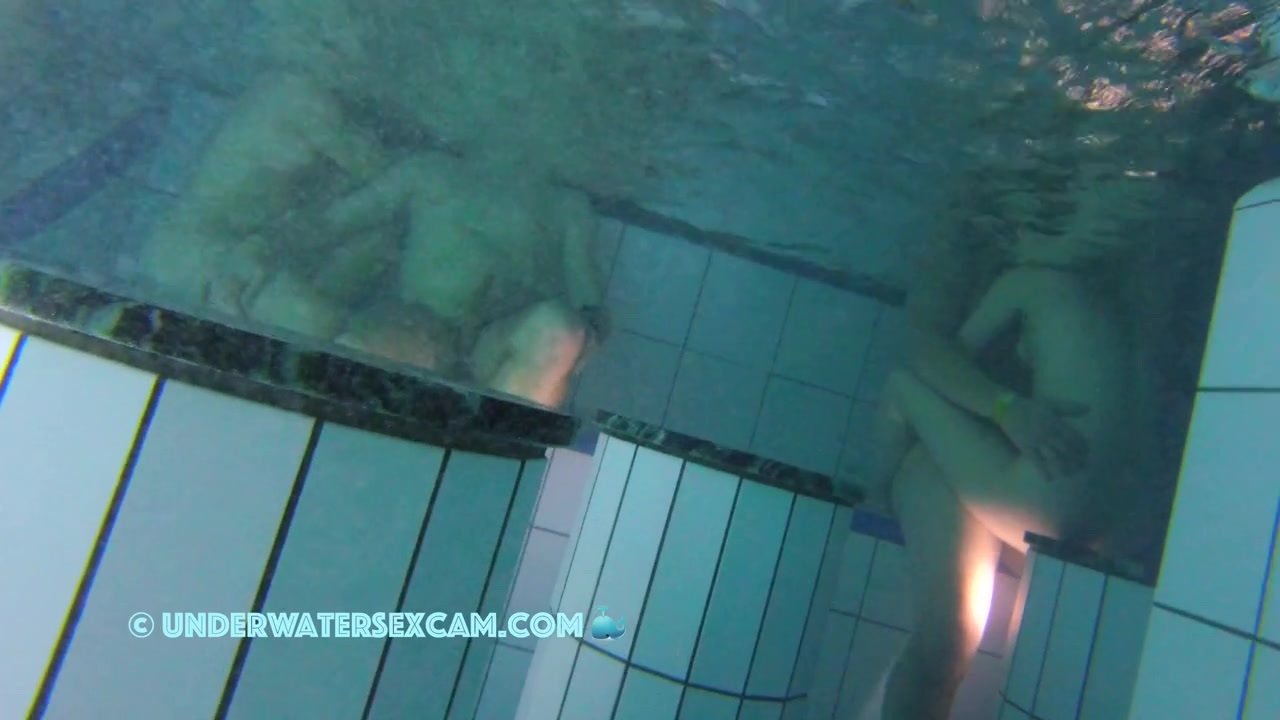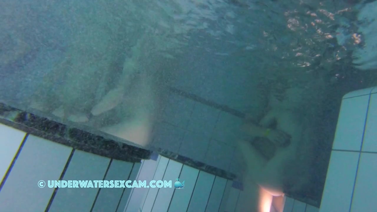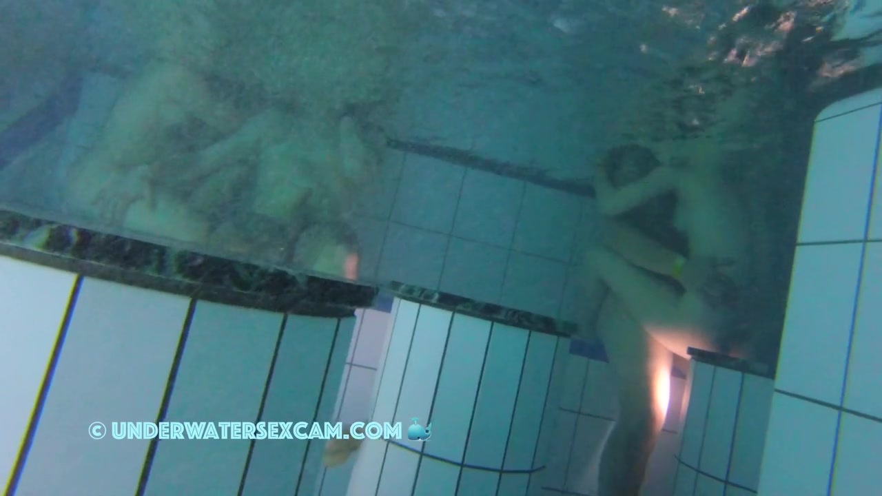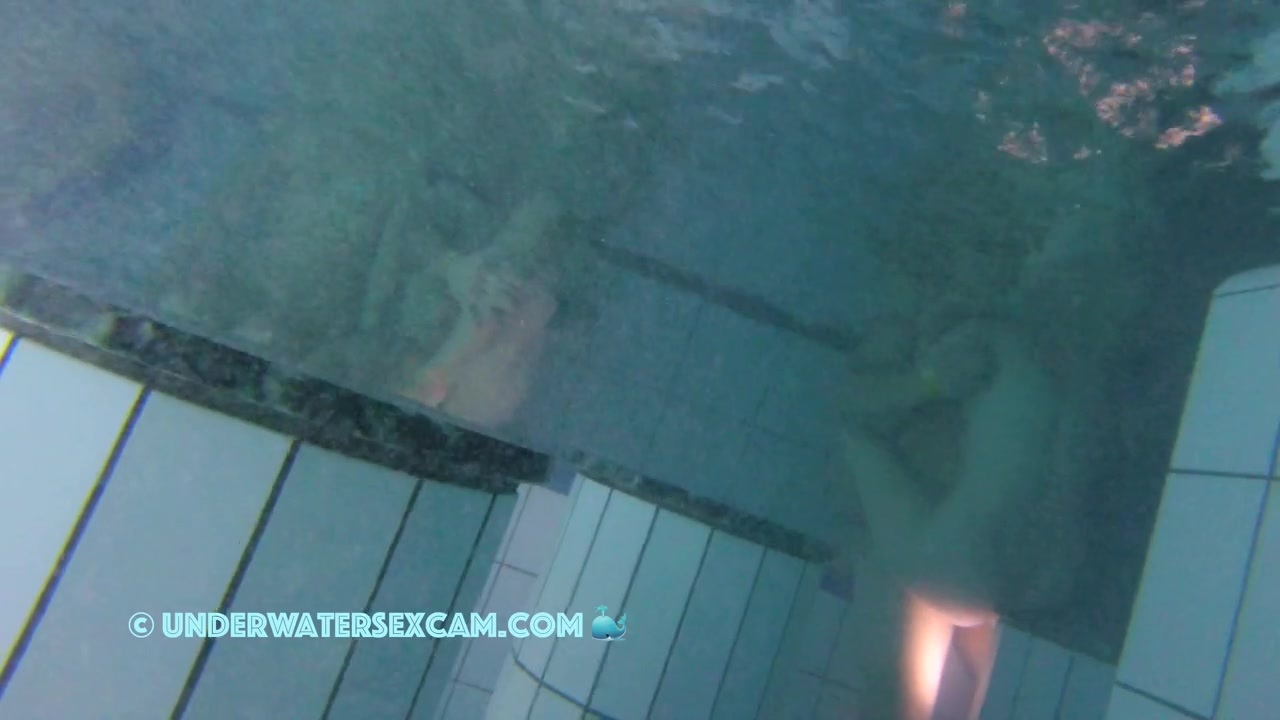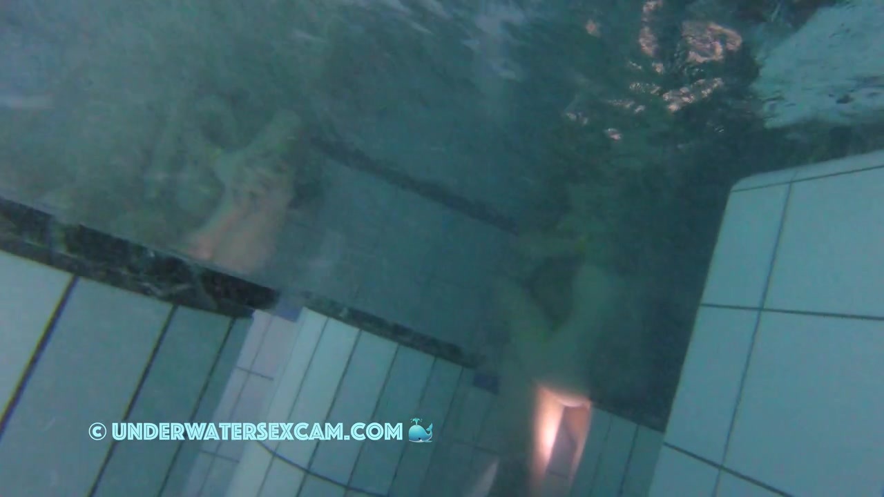 A couple is doing something underwater, and the husband of the other woman next to them gets an erection from watching while the hidden security cam is recording all underwater in a public fkk resort at night.