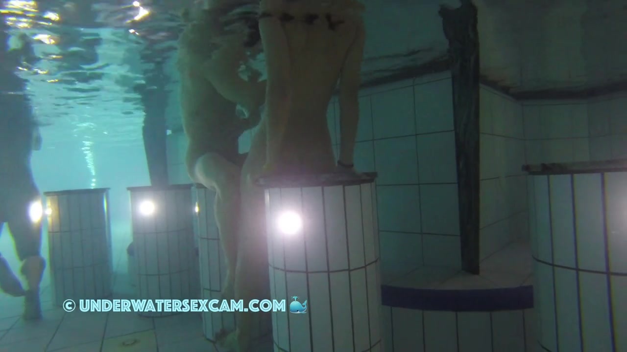 Hot Latina girl is naked in the sauna pool for the first time and seems to be enjoying it while the hidden surveillance camera is taping her underwater in a public nudist resort at night.