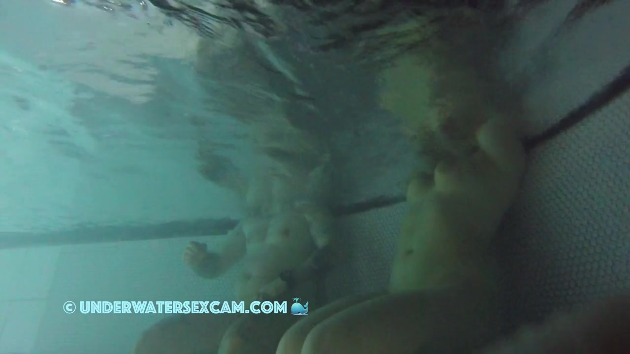 It looks like she really wants to fuck, so she sits on him in the hope that he'll get a hard-on while the curious voyeur is filming them underwater in a public sauna pool with a hidden cam at night.