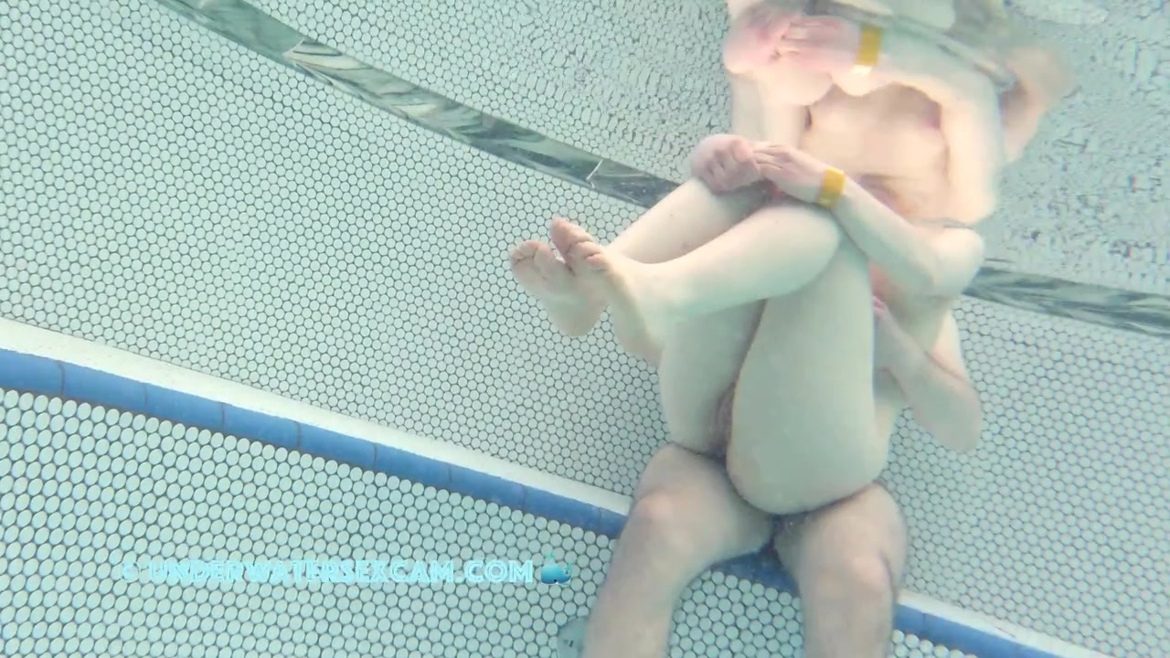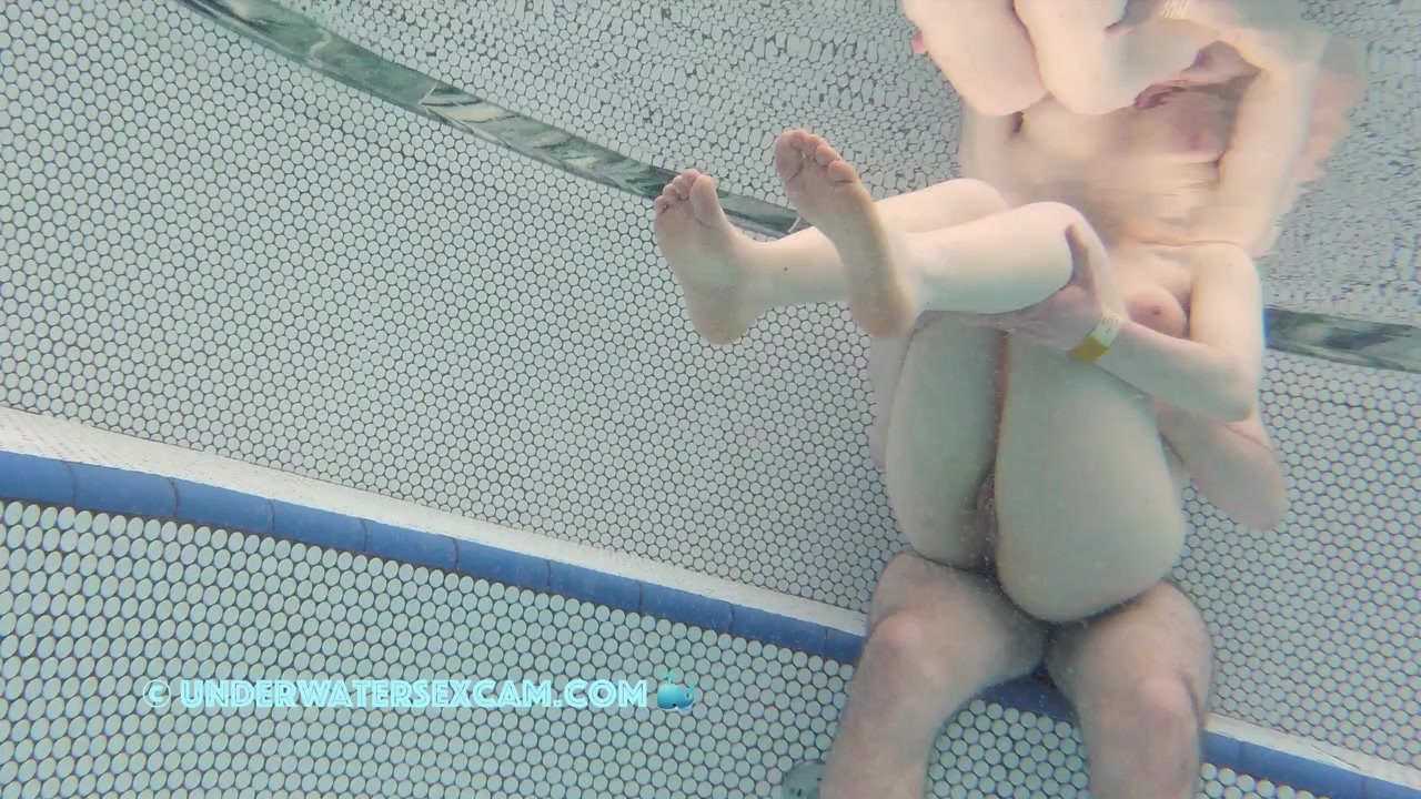 Since I'm very open-minded, he can hold her in that position while I fuck her. He's allowed to watch. Meanwhile the hidden security cam is recording all underwater in a public nudist spa.