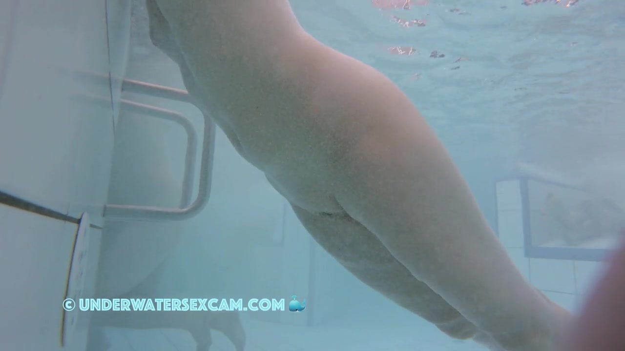 horny hot MILF would love to masturbate a lot more with the underwater jet, but unfortunately her husband is nearby while the curious voyeur is filming her with his hidden underwater camera in a public nudist spa.