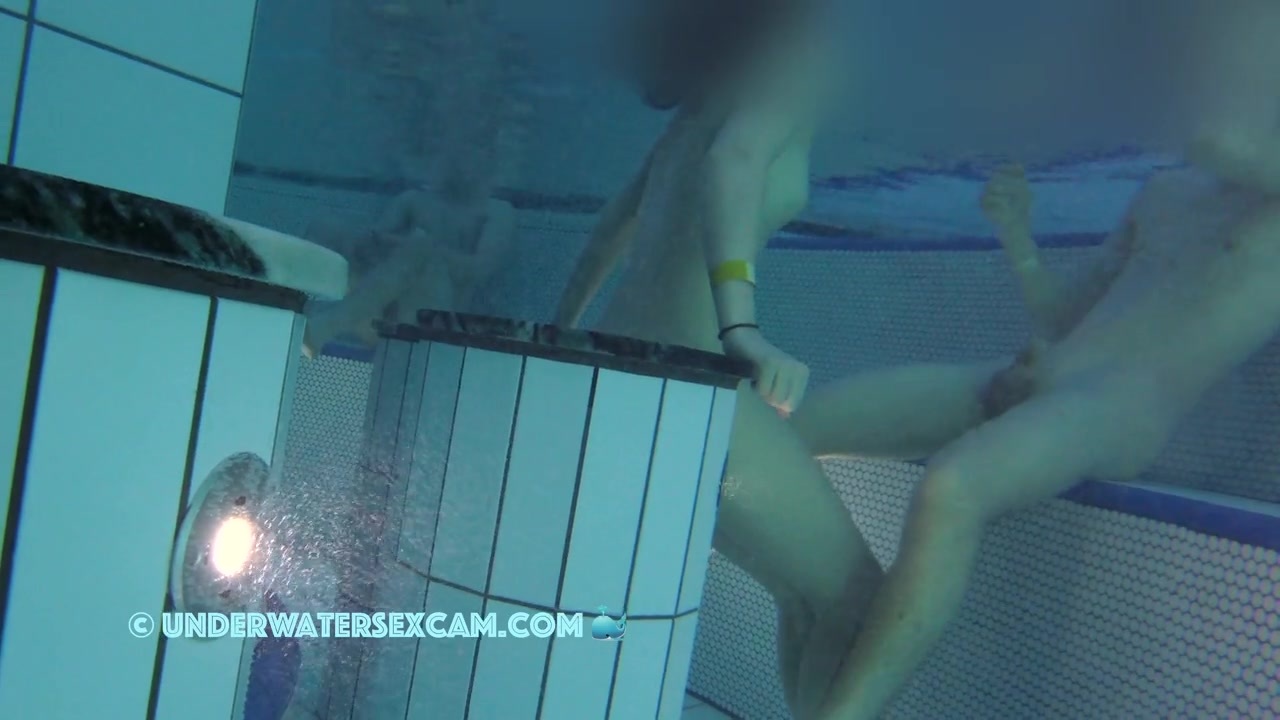 If the two of them had more experience, they might do something with his erection while the horny voyeur is filming them with his hidden underwater camera in a public nudist resort at night.