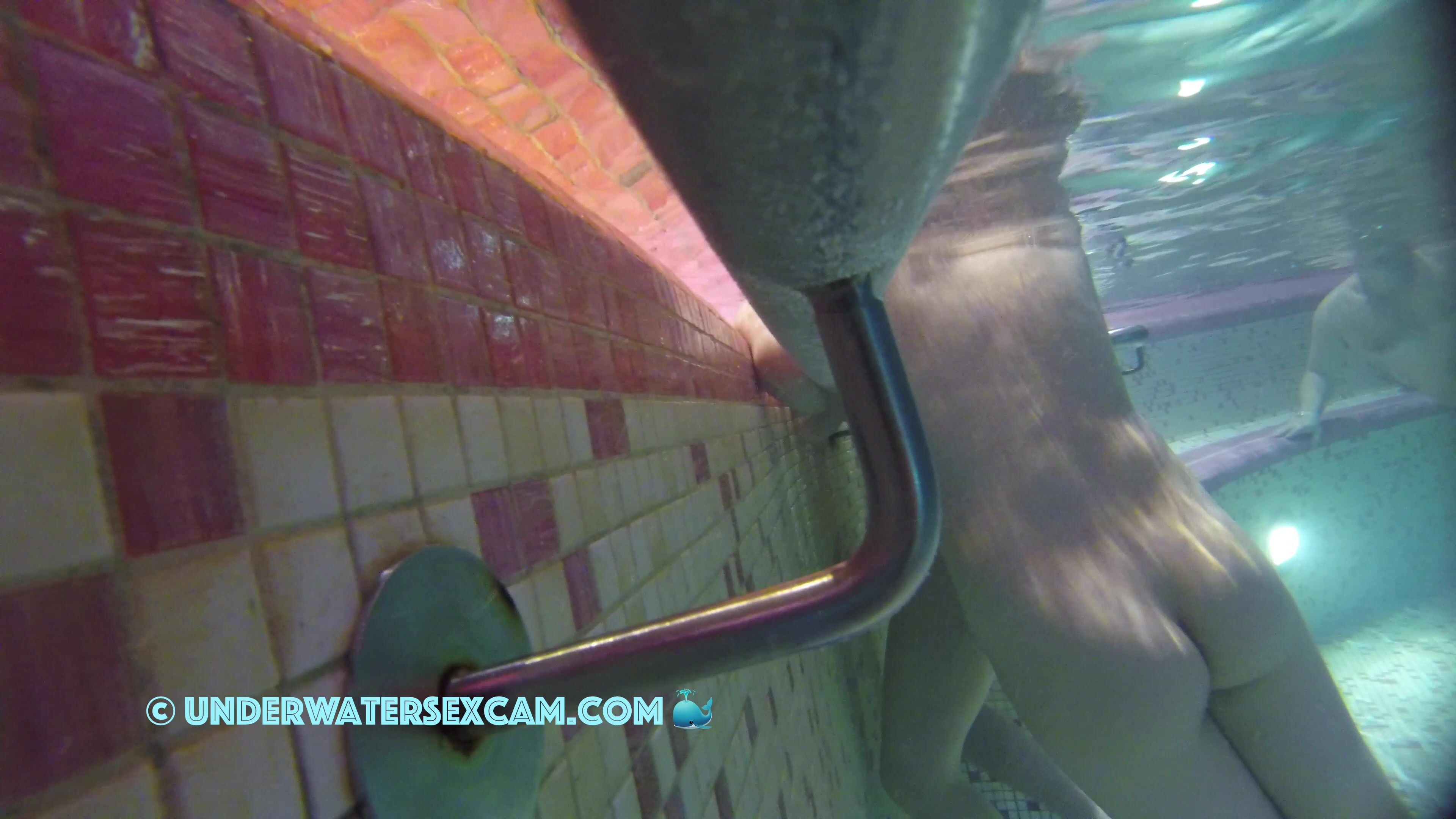 This teen 18 can't stop masturbating with the jet stream underwater in a public pool while the voyeur is filming her with his hidden camera.